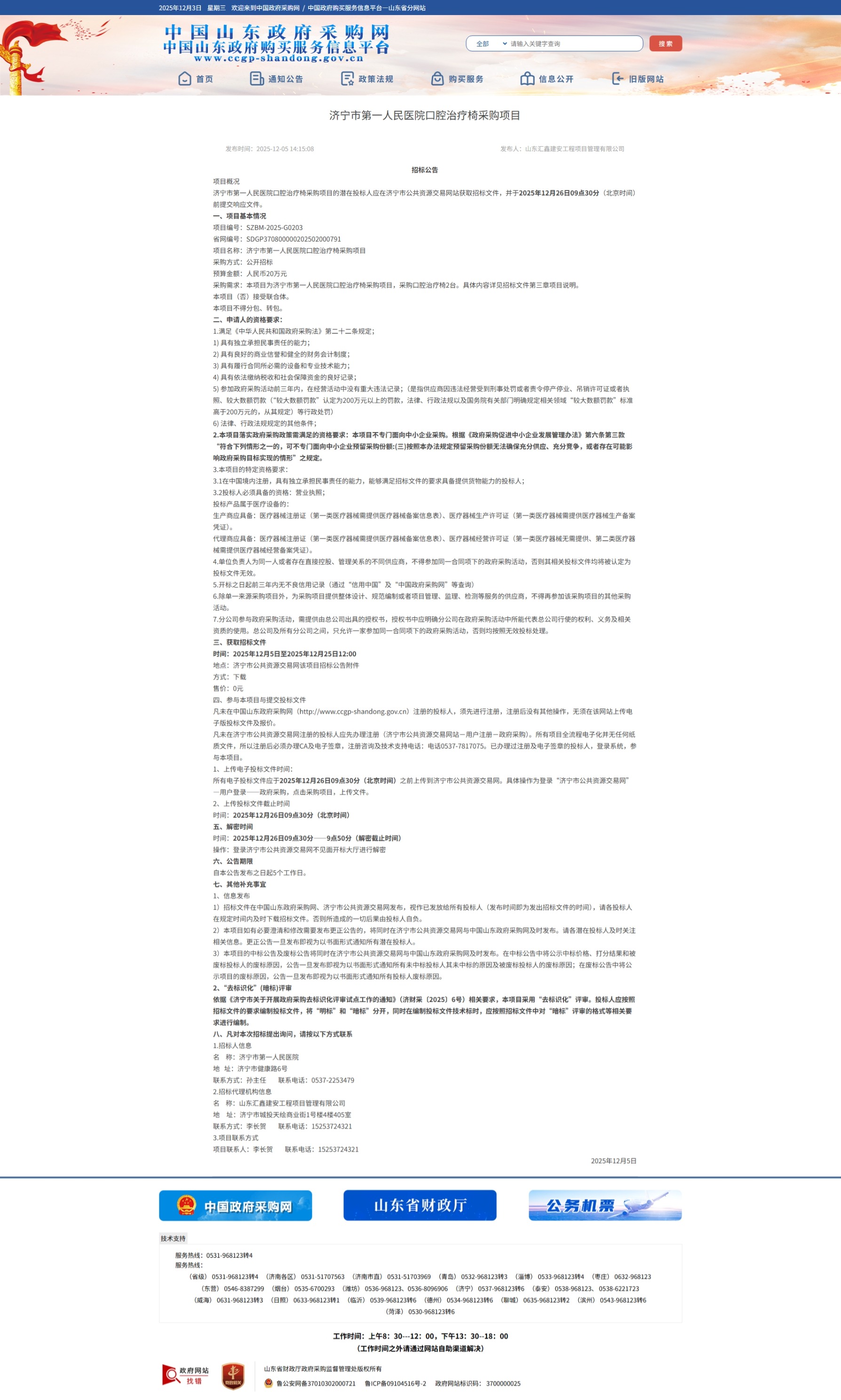 濟(jì)寧市第一人民醫(yī)院口腔治療椅采購項(xiàng)目招標(biāo)公告
