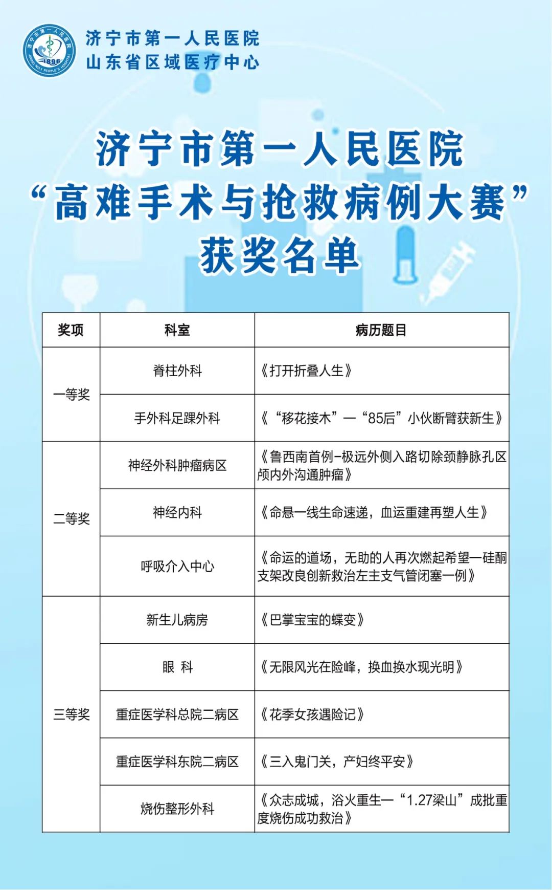 提升群眾就醫(yī)滿意度沒有終點,只有連續(xù)不斷的新起點。為進一步提升百年一院“診大病、治大病”服務能力,在醫(yī)師節(jié)來臨前夕,濟寧市第一人民醫(yī)院開展“高難手術與搶救病例”大賽,展現(xiàn)醫(yī)院醫(yī)師精湛醫(yī)術及疑難危重病例救治水平,進一步激勵臨床醫(yī)務工作者勇攀技術高峰,更好的為人民健康服務。