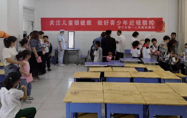 濟(jì)寧市第一人民醫(yī)院眼科醫(yī)務(wù)人員攜帶專業(yè)設(shè)備,將教室迅速布置為眼科檢查室,為現(xiàn)場(chǎng)的學(xué)生進(jìn)行視力、驗(yàn)光、裂隙燈檢查、斜弱視檢查等,并為學(xué)生和家長(zhǎng)提供近視防控咨詢服務(wù),活動(dòng)期間完成了90名學(xué)生的眼科查體任務(wù)。