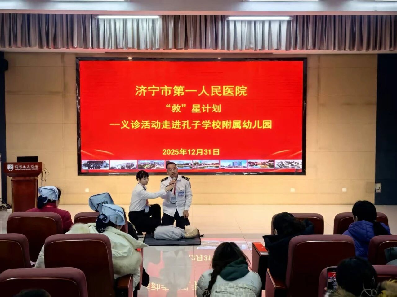 為進(jìn)一步提升校園教職工健康素養(yǎng),普及中醫(yī)養(yǎng)生知識(shí)與應(yīng)急急救技能,近日,濟(jì)寧市第一人民醫(yī)院組織中醫(yī)醫(yī)護(hù)及教學(xué)培訓(xùn)部急救培訓(xùn)團(tuán)隊(duì)走進(jìn)孔子學(xué)校,以“中醫(yī)護(hù)航 ‘救’星同行”為主題,開展中醫(yī)健康宣講、心肺復(fù)蘇與海姆立克急救技能培訓(xùn)及現(xiàn)場(chǎng)義診活動(dòng),為全校教職工送上“零距離”的健康服務(wù)。