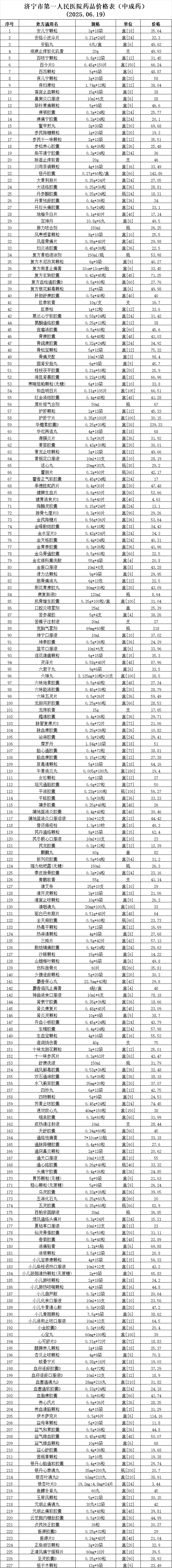 濟(jì)寧市第一人民醫(yī)院收費(fèi)項(xiàng)目——藥品目錄匯總
